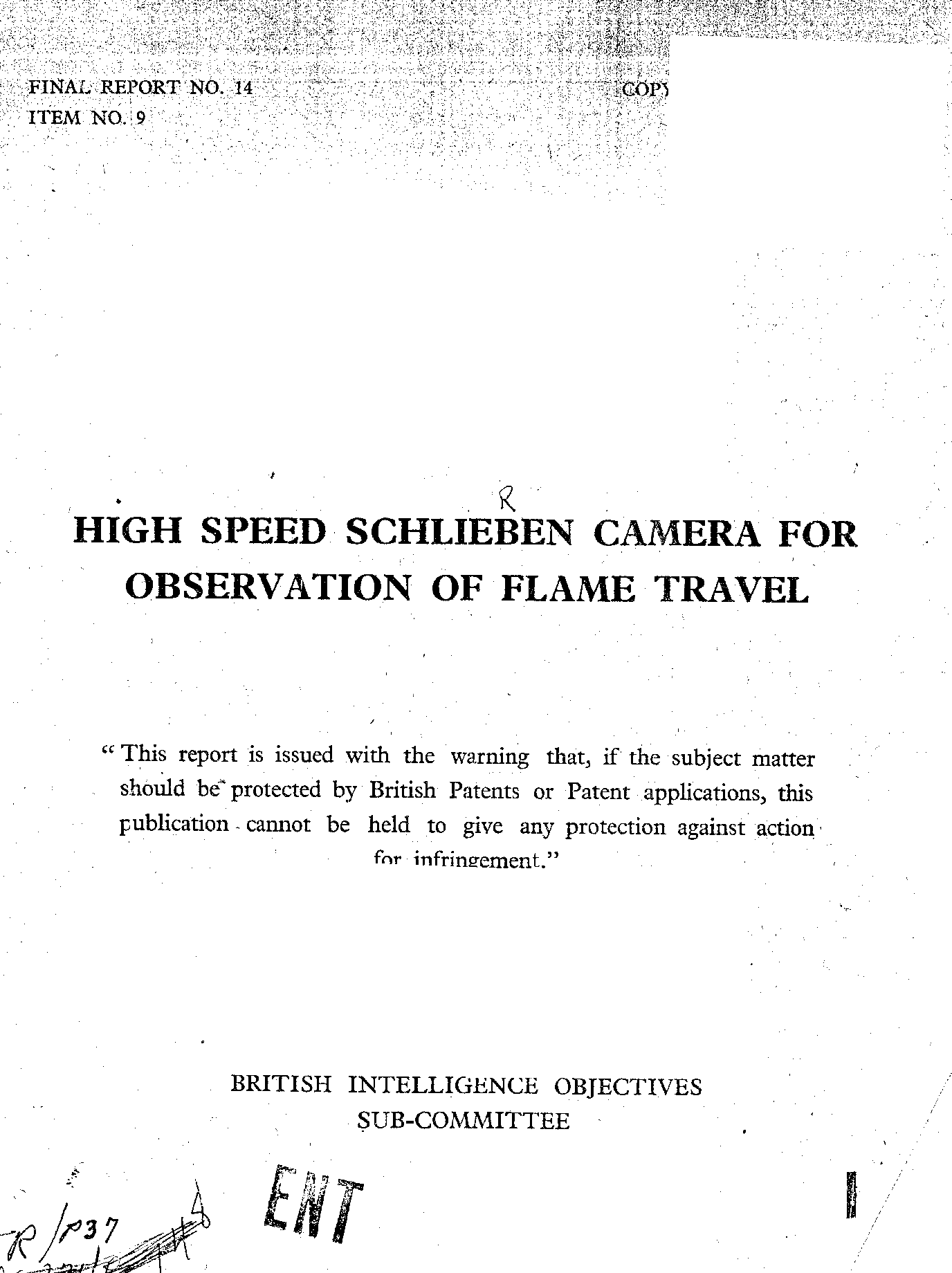 Keywords: The high speed camera has operated at speeds up to 25,000 pictures per second, the duration being about one microsecond. Intermittent spark illumination is used in conjunction with a simple rotating drum camera ... flame propagation ... Schlieren method ..; construction of the discharge tube ...; Dr. Neubert has carried ..; ... some 400 film negatives are available in the laboraty ... ; combustion in the V-1 flying bomb, with a view to improving the maximum altitude ...