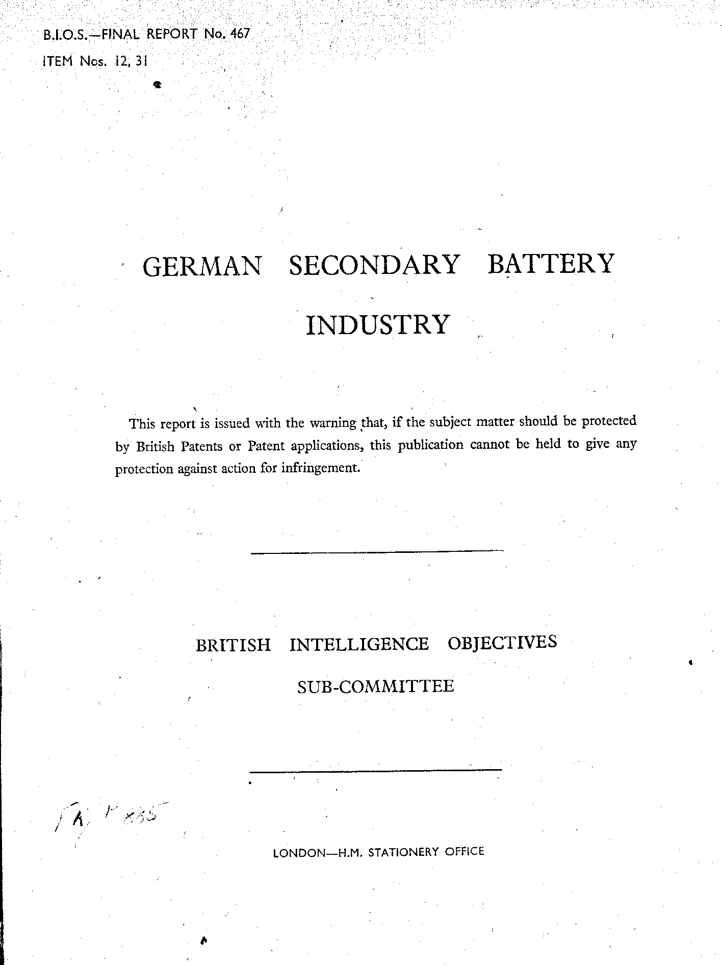 Keywords: A.F.A. Acculator Factory Hagen; Torpedo Batteries; Submarine Batteries; Lead Acid Batteries; Alkaline Batteries; A.F.A. Accumulator Factory Hanover; Carl Zoeller Accumulator Factory, Hoppecke; W.Seippel G.m.b.H. Bochum; Wilhelm Hagen Accumulatoren Factory Soest; Gottfried Hagen Aktiengesellschaft Köln-Kalk