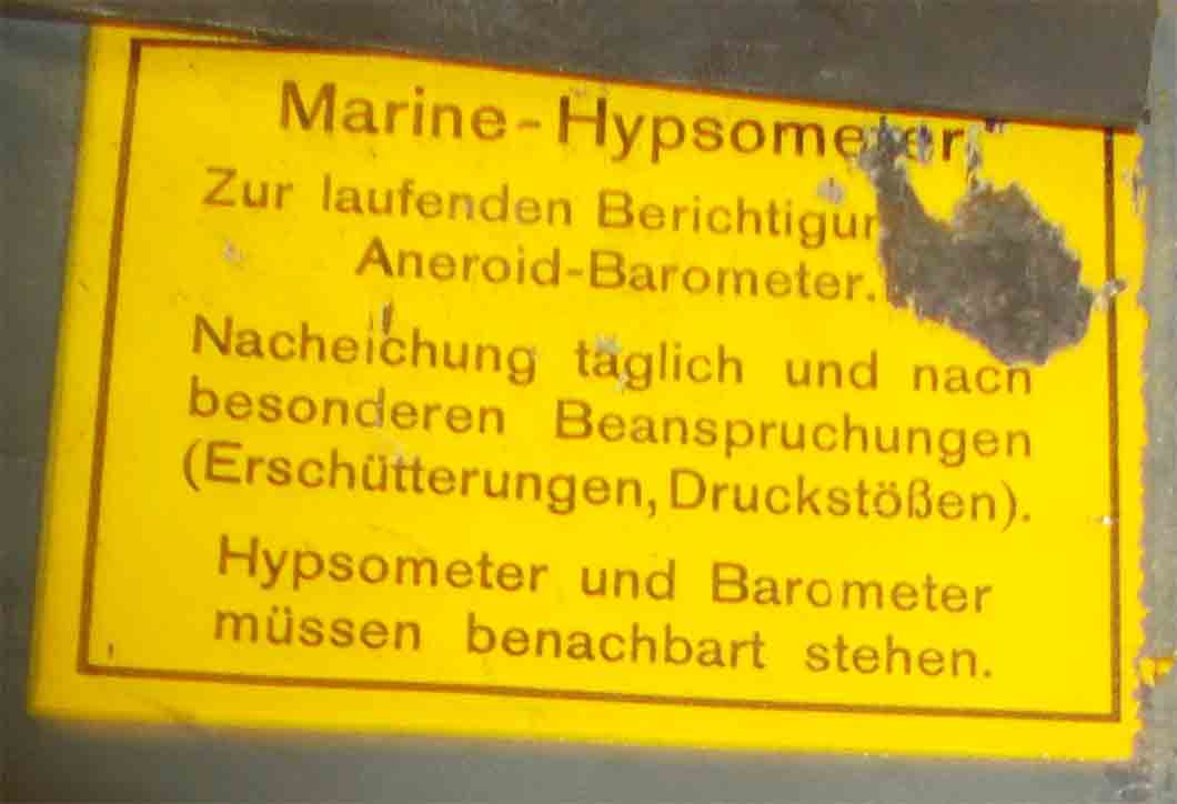 The only thing that can be derived from a label – is that it was used for daily calibration of a barometric device. The British mains plug points into the direction that this apparatus was once operated in Britain.
