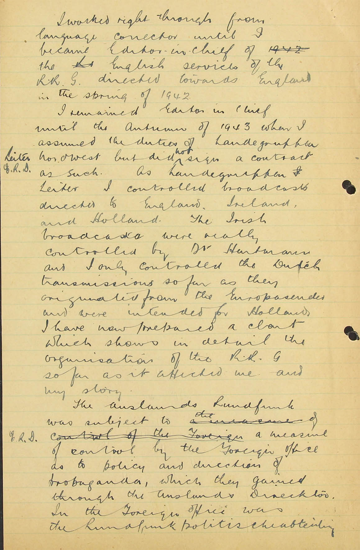 The first record that the BBC has of his appearance at the German microphone during this was is in the German European Service on 8.4.42. In a broadcast in this Service, however, on 6.1.43 he himself referred to having broadcast in German over the German National System on 8.1.42. The following broadcast by Dietze on 20.11.43 in the German European Service may interest you: