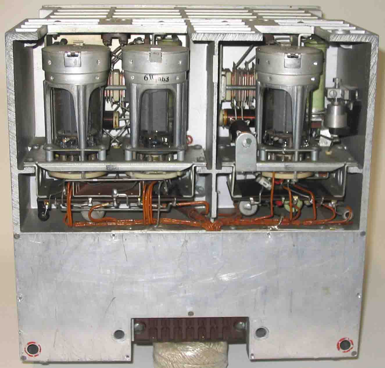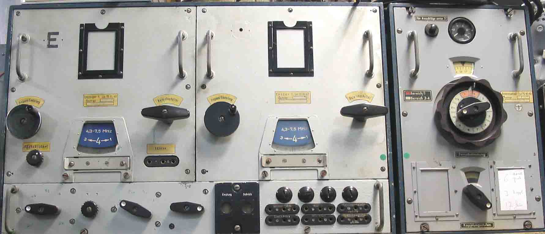 Left we see the receiver (E); in the centre we see the transmitter; on the right-hand side we face the antenna-tuner.