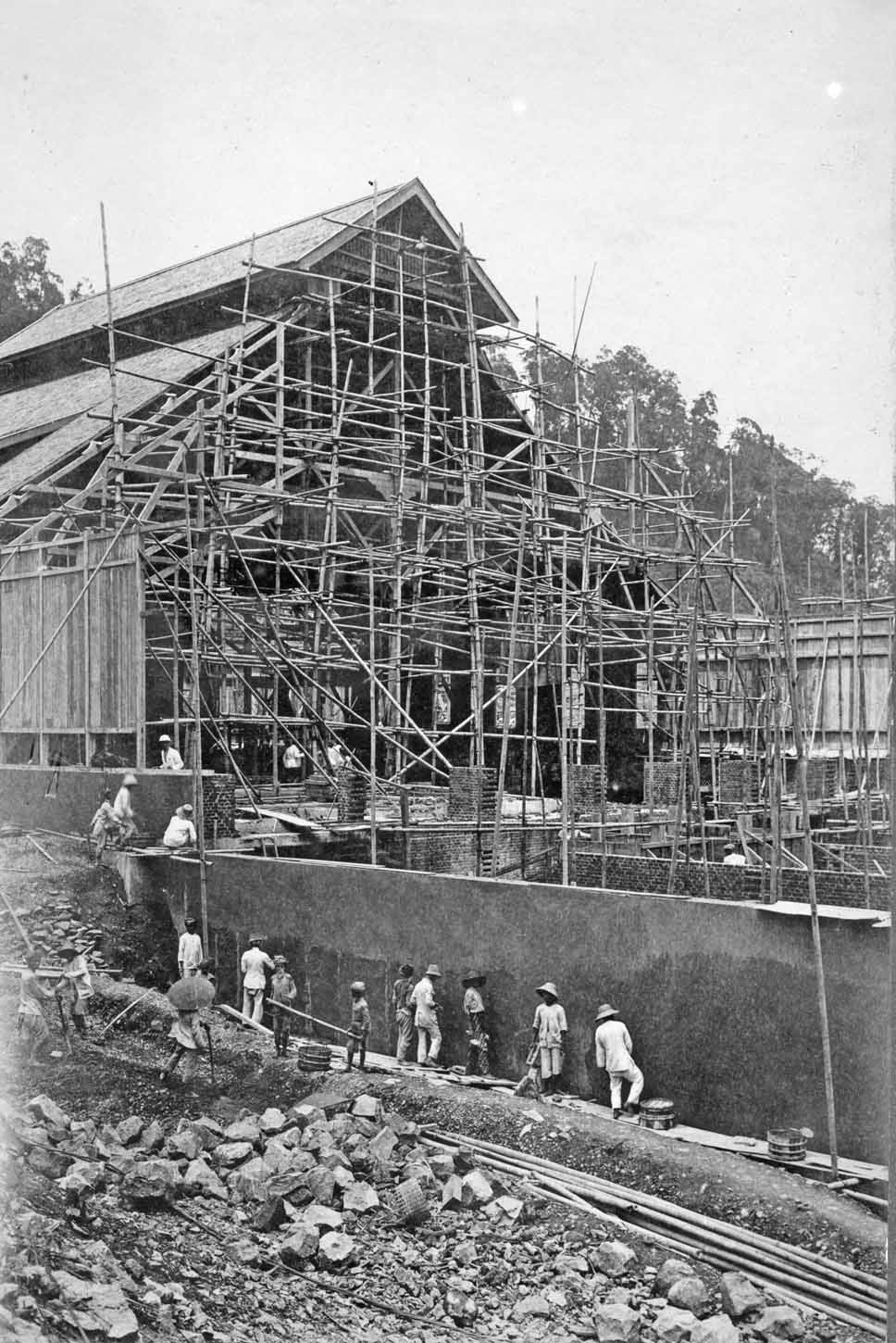 Laying the fundaments for the the extension hall for the Telefunken transmitter. Viewing in the distance the Bandung high Valley.