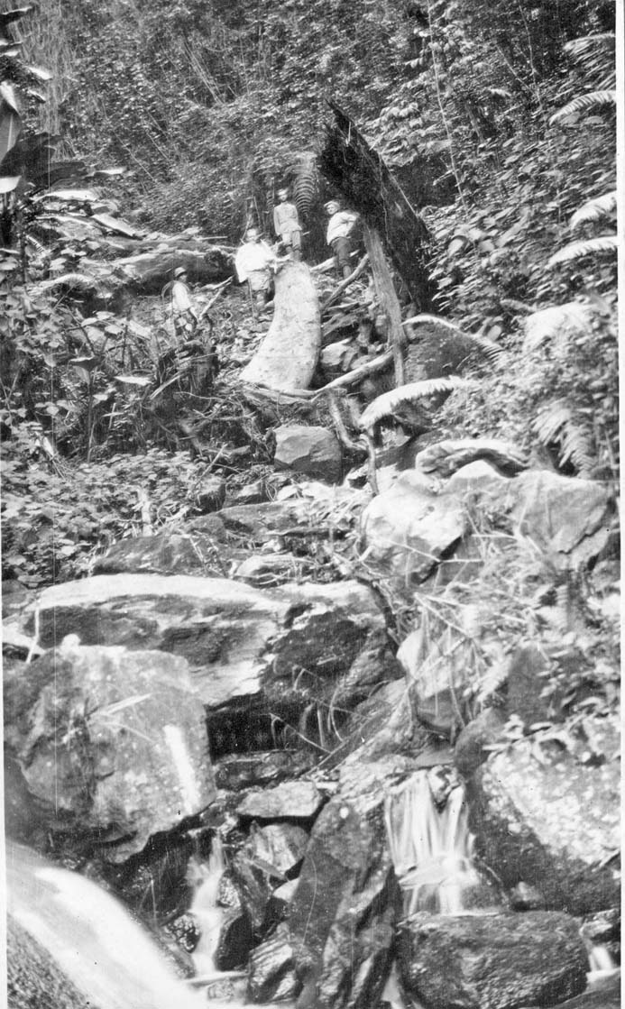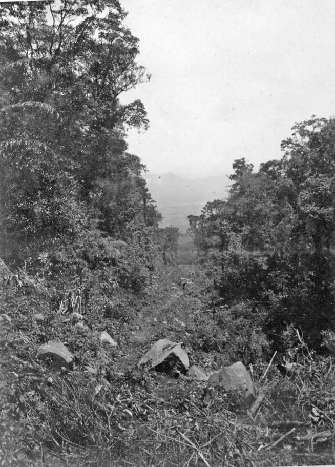 Before the Malabar project could start, the mountainous area must have been explored. Routes, mostly being small pathways, must be build. Bearing in mind the future huge antenna arrangement, which necessitated supporting wire constructions build in between both opposite canyon slopes. Great care was to be taken finding suitable strong-holds for the motor-driven winches.