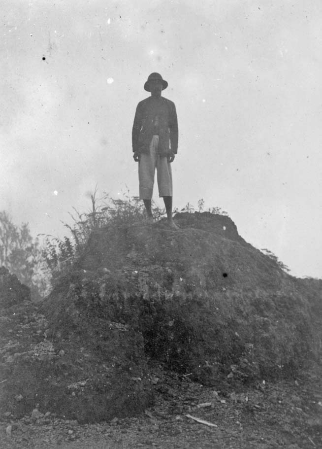 That he has a European background is evident, as only Europeans wore 'tropical helmets'.