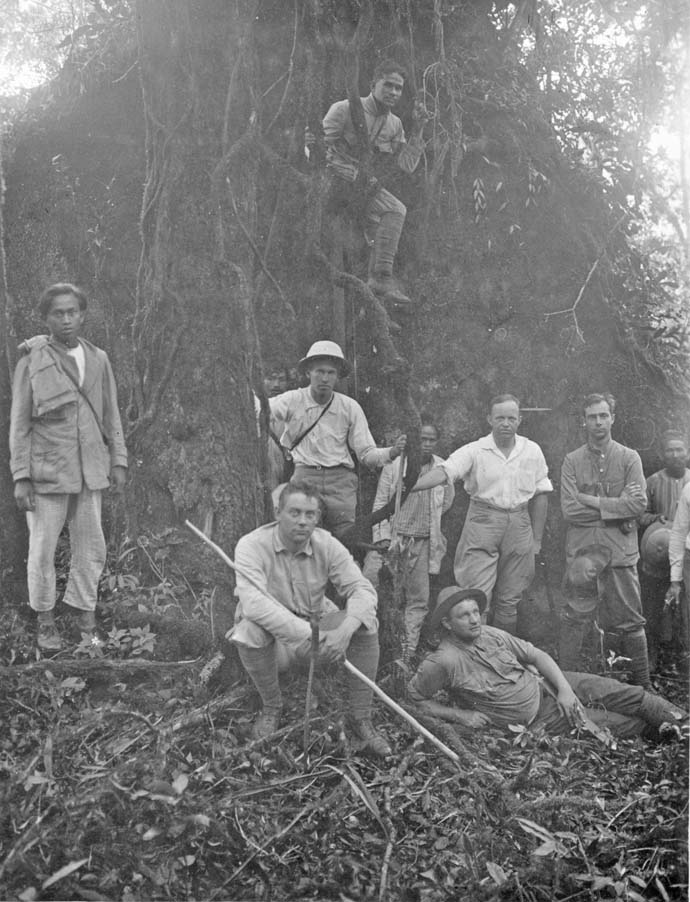 I guess, he is the one standing in a dark tropical suite on the far right-hand side. Maybe, the person laying on the ground could be Klaas Dijkstra; because there exist familiarity to a 1922 photo taken of him standing in front of the 'Grote Boog'. He joined the Malabar crew, to what I know, about 1921. But he was from the very beginning engaged with erecting the Malabar wireless station. Although, he first lived still in Bandung (Bandoeng). About 1923 he moved to the (medium) staff houses meant for personnel of Radio Zendstation Malabar.