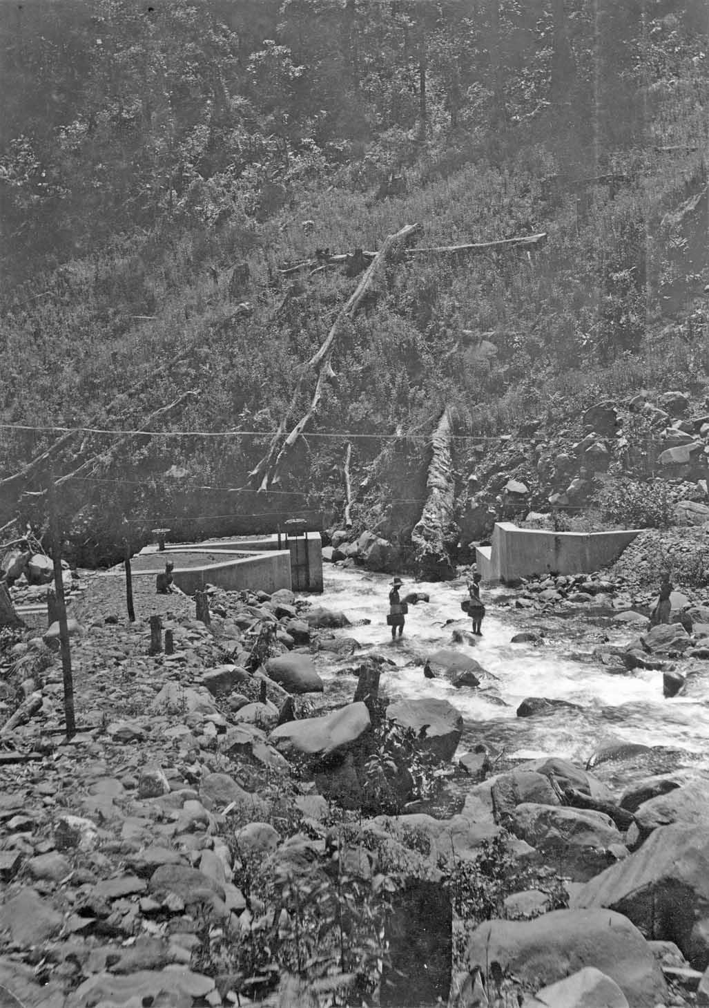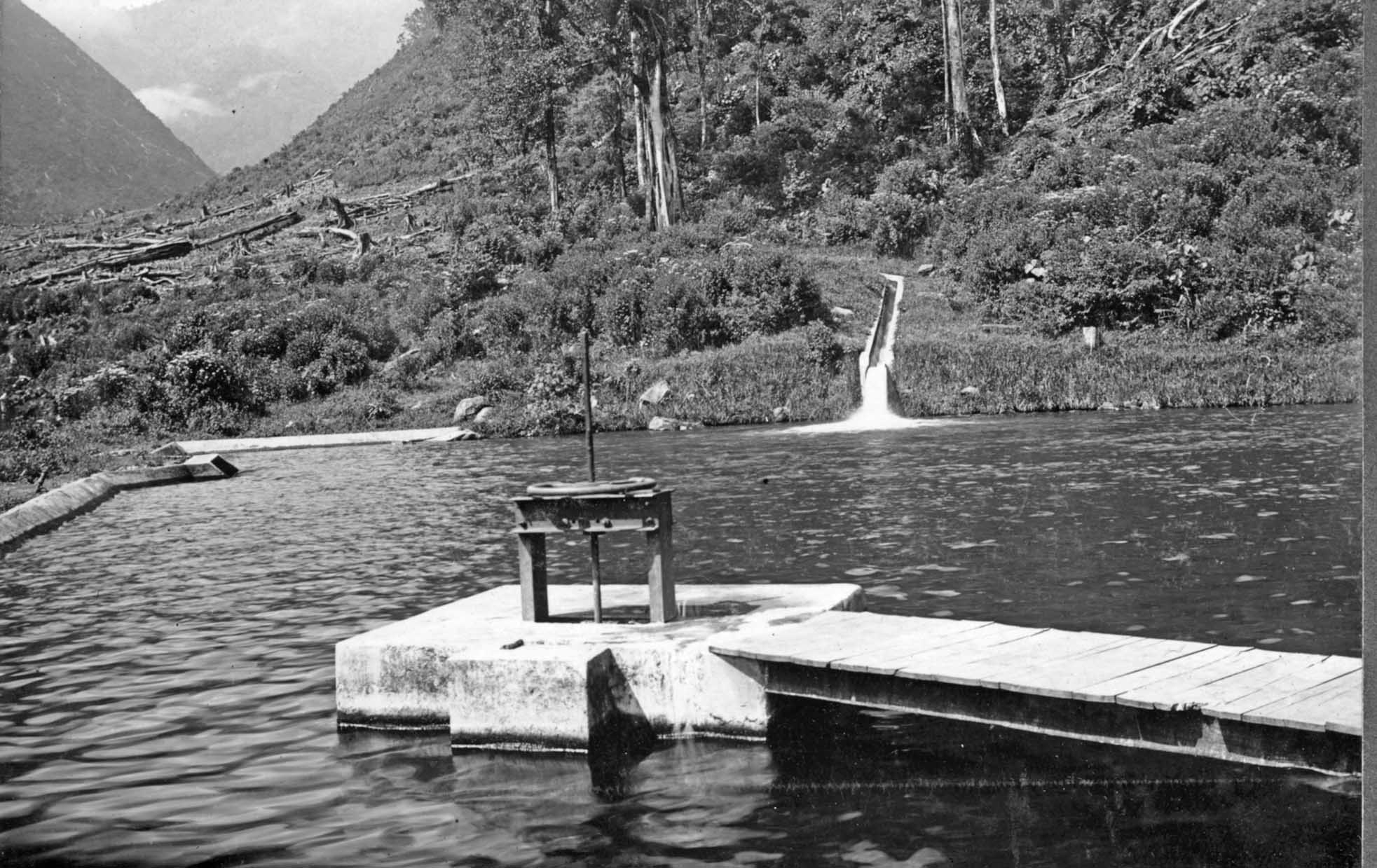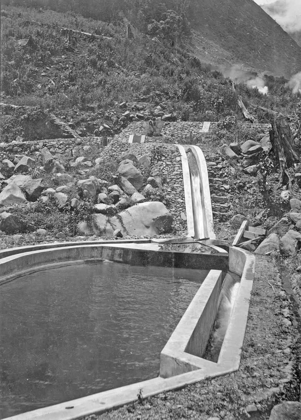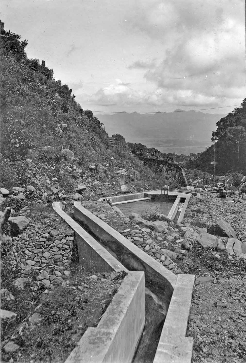 Viewing the water stream towards the intermediate basin. In the background the high valley of Bandung