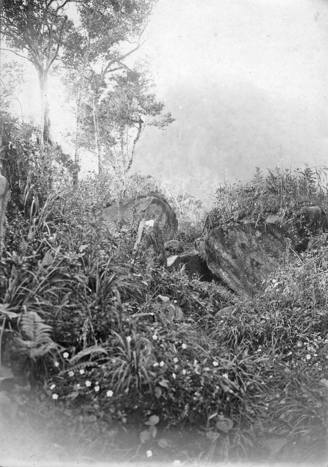 Wild stream, in the far background, the high plane of Bandung (Bandoeng)