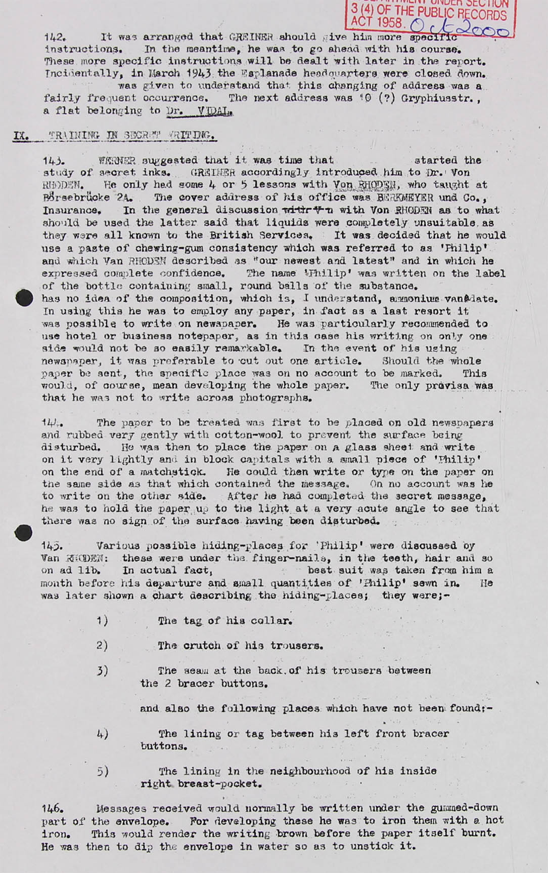 * Dr. Rhoden is an alias; his real name Hptm. von Raffay Werner; appears in KV 3/204 page 16 as Gruppe II G originally from I G Geheimsachen; falsification of passports and other documents. Training of agents in secret writing, Micro-photography