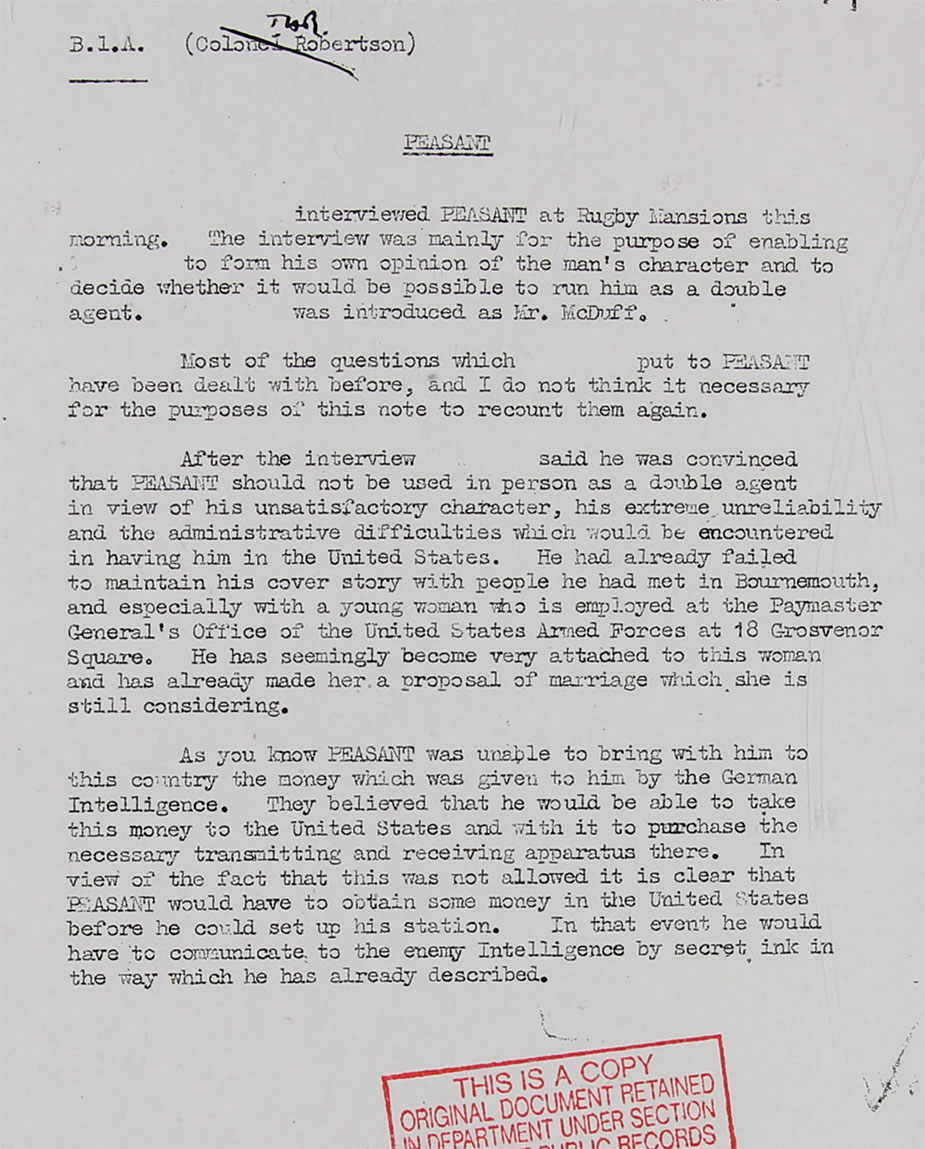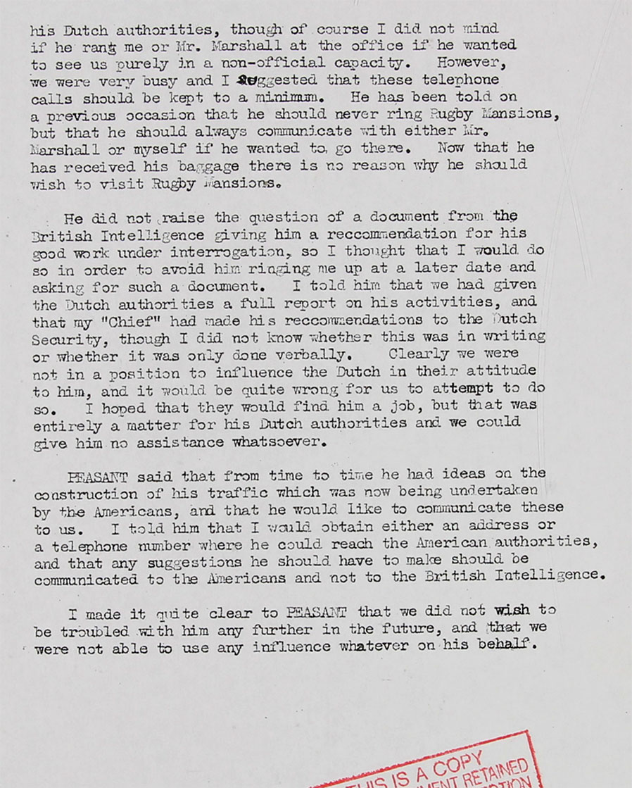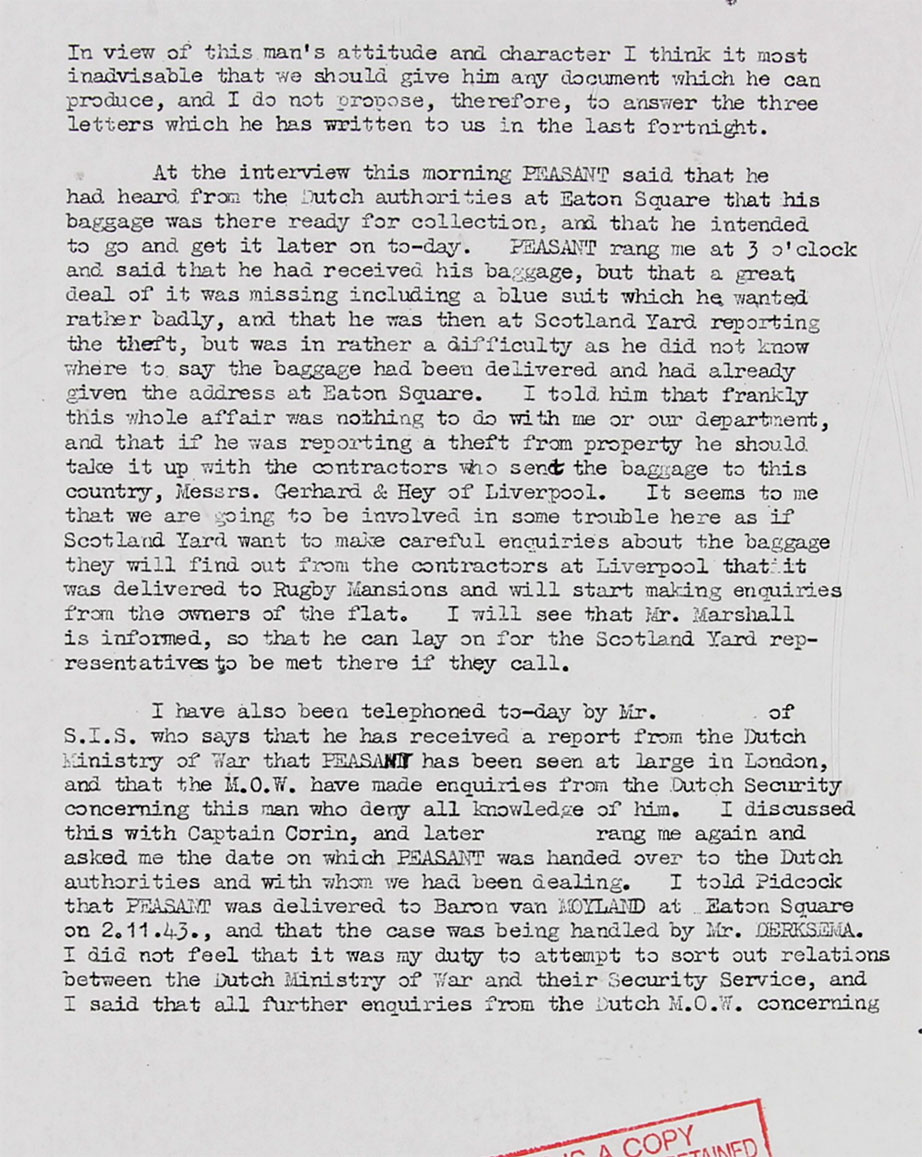 Likely as to save Mr Goldschmidt's reputation, the British Services maintained the once coined cover-name "Peasant"
