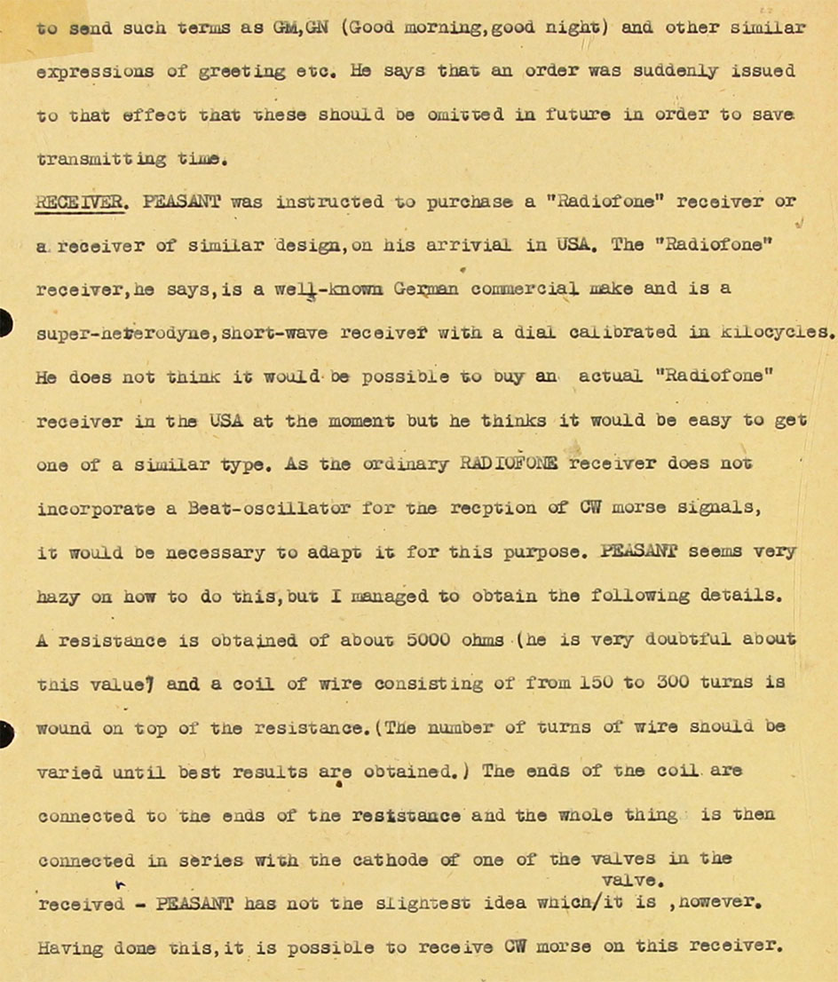 AOB: It might sound odd (strange) that an aspirant agents should being taught in building (constructing) their own transmitters; but especially when America was concerned - it would have been rather clumsy when an agent entering the U.S. should carry a W/T set along. In the U.S. it was considered quite easy to purchase enough components as to build/construct a transmitter yourself.